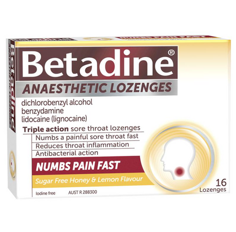 Betadine Anaesthetic Lozenges 16 Pack Honey & Lemon (EXP: 01/02/2026)