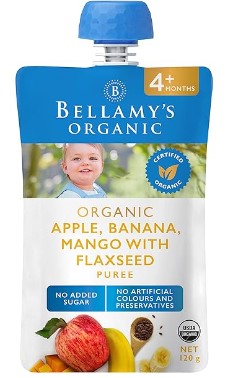 Bellamy's Organic Apple Banana Mango With Flaxseed Puree 4+ Months 120g