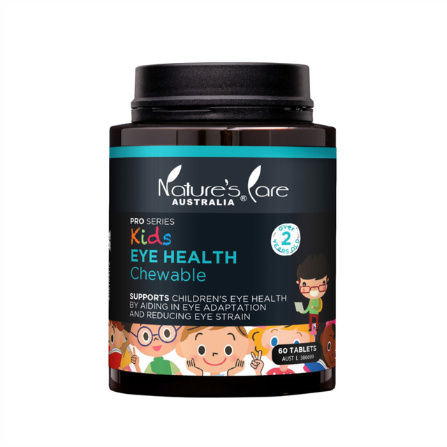 Nature's Care キッズ アイ ヘルス チュアブルは、ルテイン、ベータカロテン、コハク酸 d-α-トコフェリル、ゼアキサンチンを特別に配合しています。これらの成分が連携して、コンピューター、iPad、スマートフォン、その他のデジタル機器から発せられる高エネルギーのブルーライトから子供の目を保護し、子供の健康な視力の維持に役立ちます。