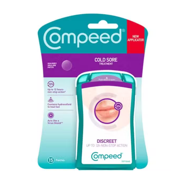 Compeed 口唇ヘルペス パッチは、破れたヘルペスや水疱を治癒し、ウイルスの拡散を軽減するように設計されています。