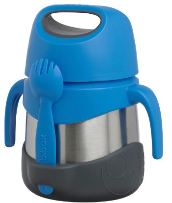 B.Box Insulated Food Jar helps keep food at the perfect temperature all day, whether kids prefer warm pasta for lunch or cold refreshing fruit and yoghurt. Great for kinder and school with a 335ml capacity. Comes with spork utensil that tucks away into custom bumper. Easy grip handles give kids leverage to open the jar easily, encouraging independence. Removable arms and bumper ensure the food jar can be tailored for older kids too. Unique stop feature stops parents from overtightening the lid. Dishwasher safe. When using to keep food warm - for best performance fill the stainless steel base with hot water for a few minutes to warm it before pouring water out - and filling with delicious hot food.