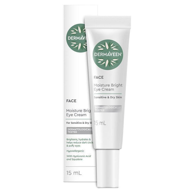 DermaVeen Moisture Bright Eye Cream is specially formulated with natural Colloidal Oatmeal to hydrate and replenish dry and sensitive skin around the eye.
