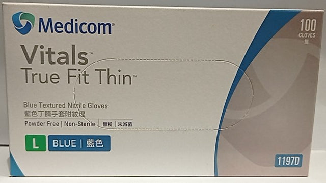 Medicom Vitals True Fit Thin Large Blue 100 Gloves