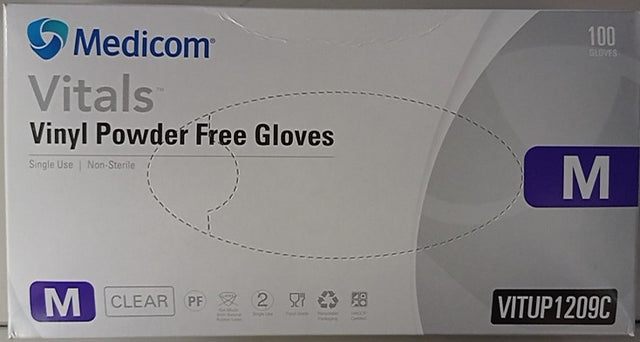 Medicom Vitals Vinyl Powder Free Gloves 100 Gloves - Medium size.