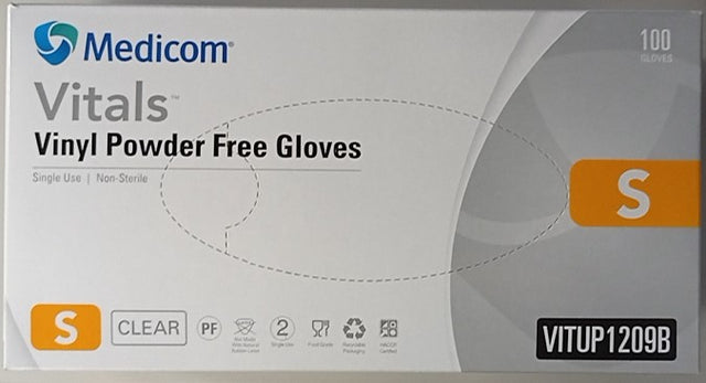 Medicom Vitals Vinyl Powder Free Gloves Small 100 Gloves