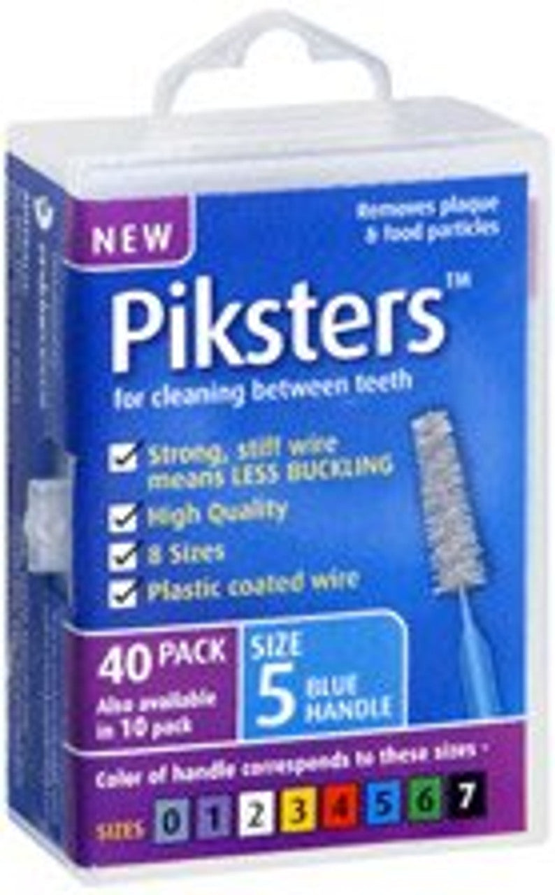 Piksters are an Interdental Brush. They are a small circular toothbrush, kind of like a toothpick with bristles, which are inserted into the spaces between your teeth.