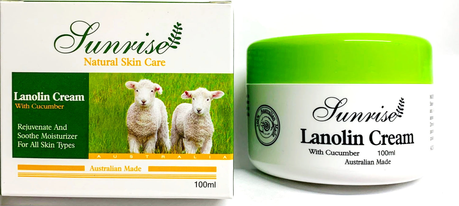 Sunrise Lanolin Cream with Cucumber Extract is blended with a nourishing formula of natural Australian lanolin, cucumber extract, aloe vera extract and vitamin E. It is specially formulated to soothe, moisturise, rejuvenate your skin which is suitable for all skin types.