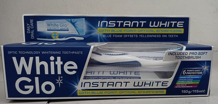 Instant and long lasting whitening - Blue Foam Optical enhancers make teeth appear whiter instantly. In colour science, blue and yellow are opposite colours. This toothpaste works as the blue foam disburses around teeth when brushed to offset any yellowness from stains. The result is visibly whiter teeth instantly! The immediate effect is temporary, but over time, the Dual Whitening Action in the toothpaste will whiten teeth enamel for lasting results.