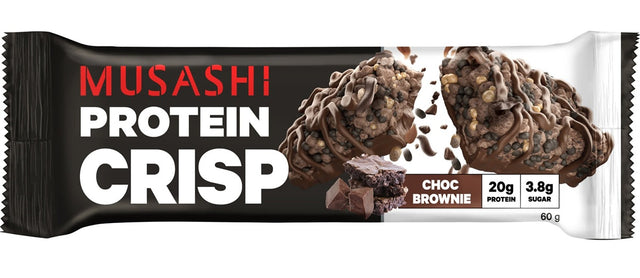 MUSASHI PROTEIN CRISP is the next evolution in the protein bar taste and sensation experience. A delicious and convenient bar loaded with 20g of high- quality protein, and a unique combination of crispy and chunky pieces drizzled in milk chocolate.