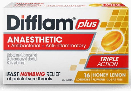 difflam plus เจ็บคอ lozenges + น้ำผึ้งยาชาและมะนาว 16 lozenges