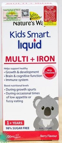 Nature's Way Kids Smart Multi Iron Liquid ได้รับการจัดทำขึ้นเพื่อช่วยส่งเสริมการเติบโตและการพัฒนาที่มีสุขภาพดีของเด็ก