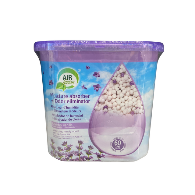 Phục hồi ngôi nhà của bạn với bộ hấp thụ độ ẩm không khí Fusion + Vanilla oải hương loại bỏ mùi. Sự hấp thụ độ ẩm hoa oải hương và vani này cung cấp một sự pha trộn cân bằng của các ghi chú hoa ấm áp để giữ cho không gian của bạn có mùi ngọt ngào. Một đồ gia dụng tiện dụng và chăm chỉ, nó giữ mùi hôi ở vịnh bằng cách trung hòa các mùi thơm không đáng tin cậy do vật nuôi, nấu ăn hoặc mustiness nói chung, đồng thời giảm độ ẩm dư thừa trong không khí. Được thiết kế thuận tiện để chống ẩm ướt trong nhiều tuần, thiết lập đơn giản, quên và để nó hoạt động phép thuật của nó.