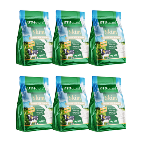 BTNature Skim Instant Milk Powder (Bag) 1kg X 6 BUNDLE [FREE SHIPPING]